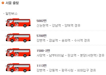 5) 강변역, 강동역, 광주시청, 외대입구 경유