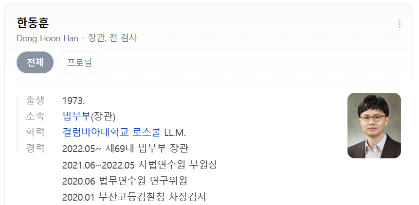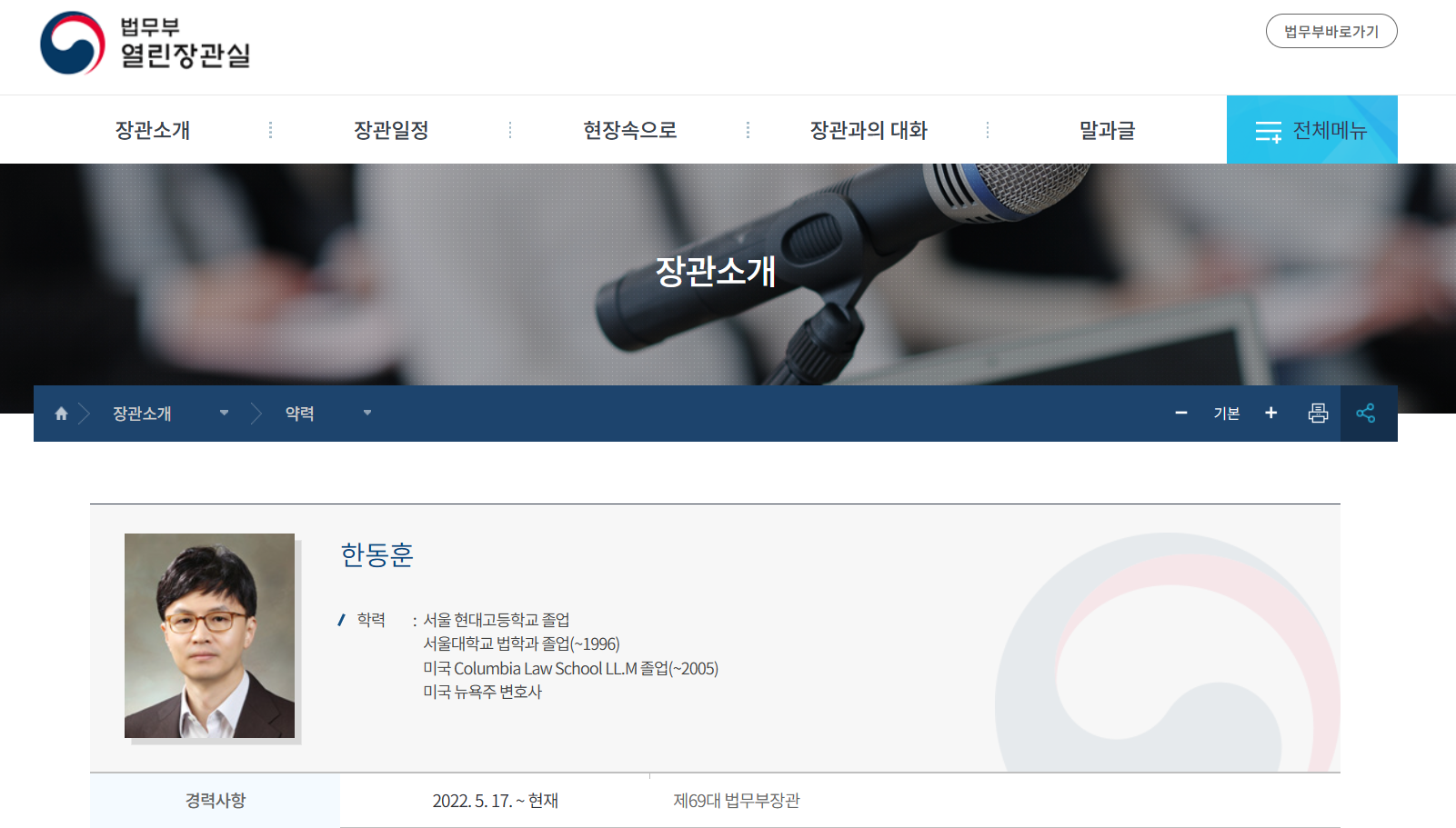 2022.5.17~12.21 제69대 법무부장관