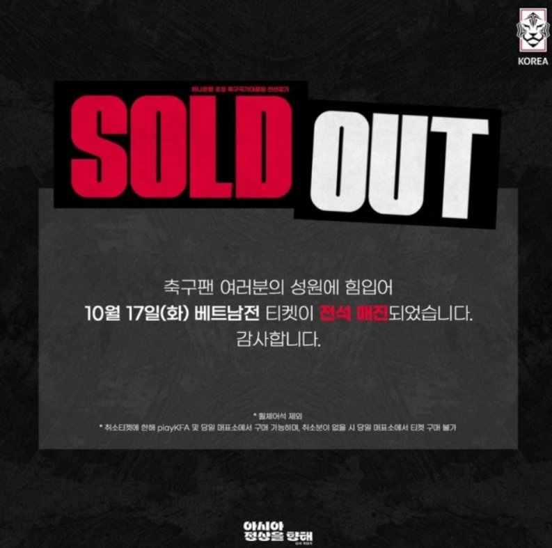 10월 17일 (화) 베트남전 티켓 41,000석 전석 매진