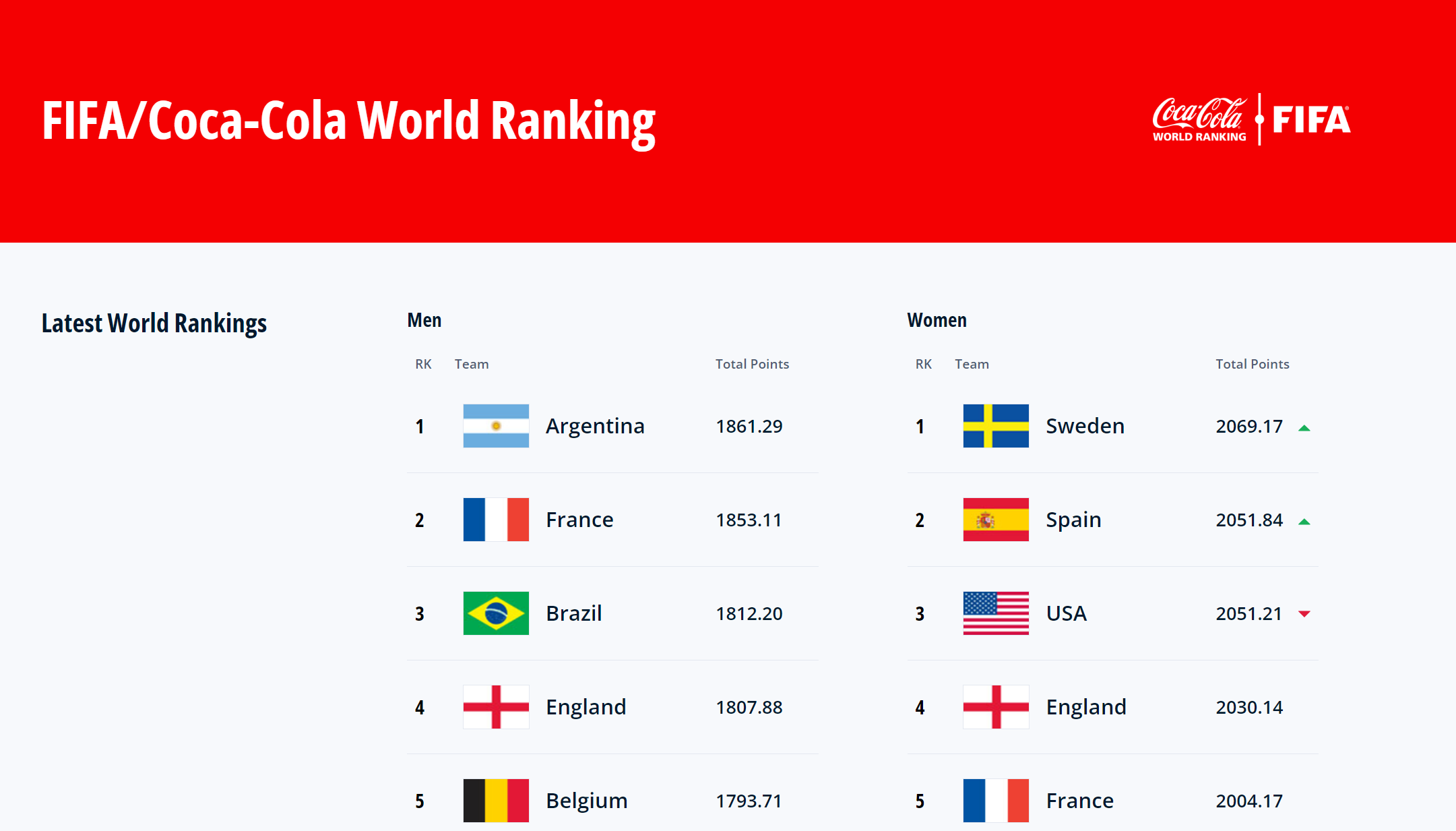 전체 FIFA 랭킹 1위는? 아르헨티나