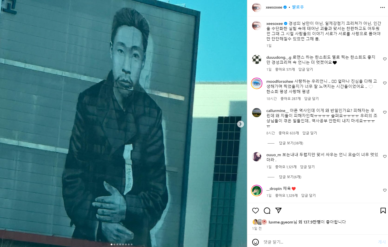 이런 안증근 열사에 대한 존경의 마음을 표하는 포스팅을 한소희가 인스타그램에 올리자