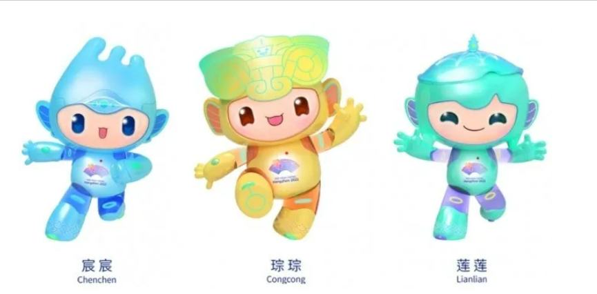 마스코트는 아래와 같이 천천, 충충, 롄롄이며 3명은 3쌍둥이로 통칭해서 '장난이'로 량주 문화, 서호, 대운하로