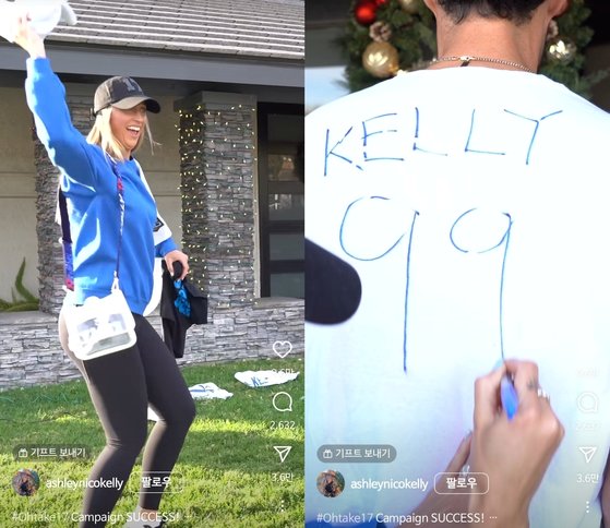 조 켈리의 아내인 애슐리 켈리는 'Otake17 (오타니에게 17번을) 해시태그를 달고,